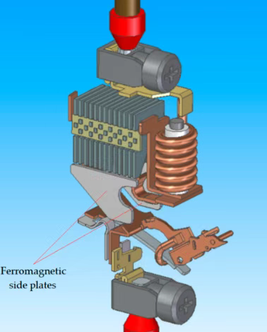 Kontaktlar bir-biridan ajralganda va yoy ildizi hosil bo'lganda, yoy tarmoq kirishiga yuqoriga yo'naltirilgan aniq F kuchiga ta'sir qiladi.
