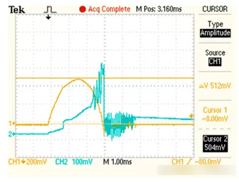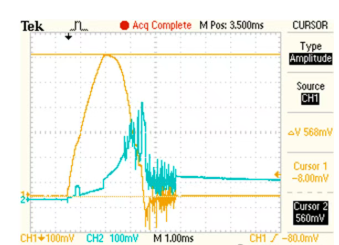 Qisqa tutashuv to'xtatuvchisi prototiplarida qisqa tutashuv toki va tiklash kuchlanish to'lqin shakllarini qayd etish uchun qisqa tutashuvni sindirish sinovlari o'tkazildi, ular demontajdan so'ng yoy nayining ablasyon belgilari bilan bog'liq edi.