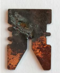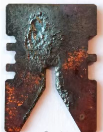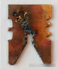 To'lqin shakli kesishdan keyin aniq jiringlash bilan yanada qizg'in. Ark trubkasi kuchli qorayish va erigan to'planishni ko'rsatadi.