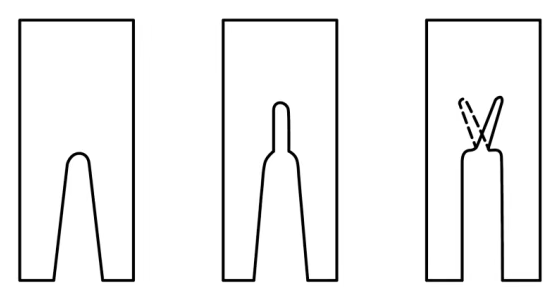 (a) Standart U shaklidagi yoki V shaklidagi tirqish (odatda AC uchun ishlatiladi)