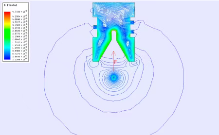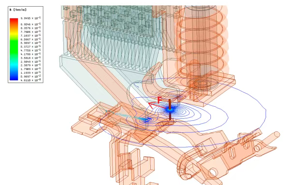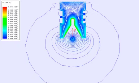 ● Rang gradatsiyasi: Magnit oqim zichligini ifodalaydi - o'tkazgichning egilishida, bobinlar yaqinida va tarmoq kirish joylarida yuqoriroq.