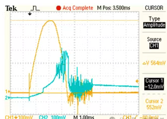 ● To‘q sariq (CH1): Tiklanish kuchlanishi/TRV to‘lqin shakli